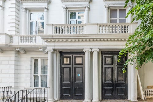 Numbers 23 and 24 Leinster Gardens are mere façades, their buildings removed during the Metropolitan District Railway’s construction. Internet lore has made them rather famous. Instagrammers put themselves in the shot with the houses behind and thousands of them tell exactly the same story to camera. So I too here will tell the tale.