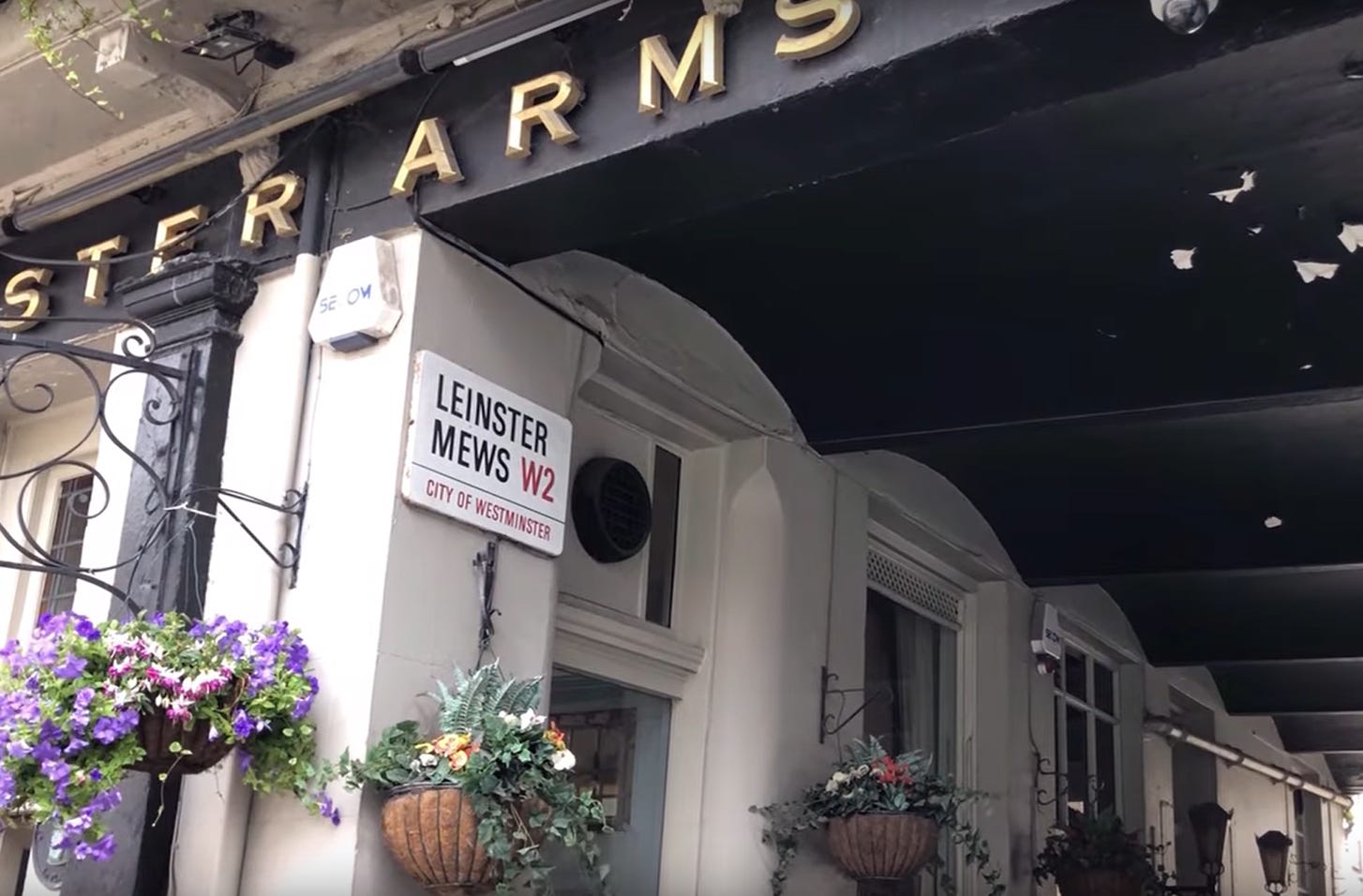 The Leinster Arms, beside Leinster Mews on the right was originally established in 1856 as The Scotch Stores. By 1881 this grade II listed pub became known as The Leinster Arms.