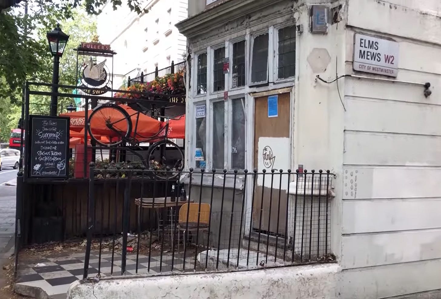 In the image above, we seem to be looking up what became Elms Mews when it ran beside the Westbourne. That seems to be the Swan Inn on the left. The Flora Tea Gardens and the Swan Inn were, as said, one and the same - the latter serving less tea and more gin. Had I stepped back dangerously into Bayswater Road to take the first photo, I’d have been able to catch the same scene.