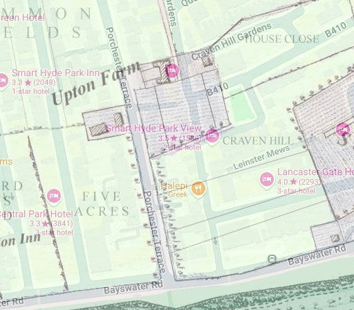 Seventeenth-century Bayswater existed as a very modest hamlet right here, 200 metres west of Lancaster Gate station. It wasn’t near what we’d now call Bayswater - the area on Queensway around the station called Bayswater.