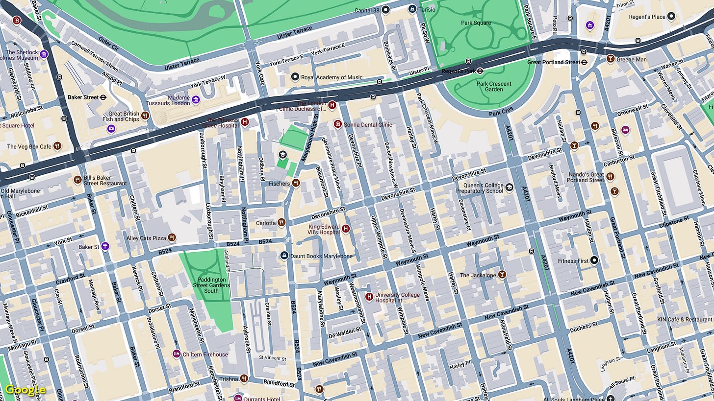 By now it wasn't actually in what Londoners called Marylebone. Such are the shifting sands of London suburb names.