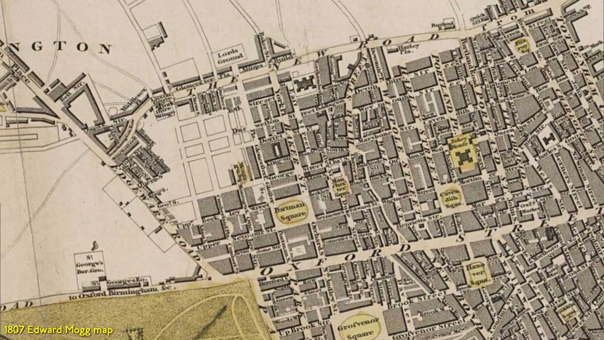 The embryonic Marylebone as a suburb is better shown on this 1807 map.
